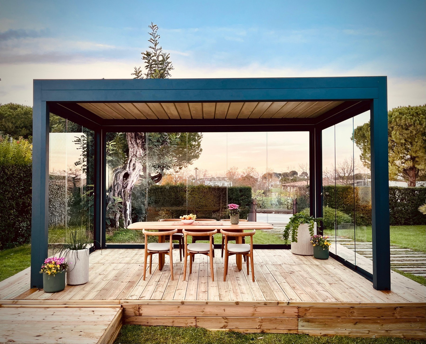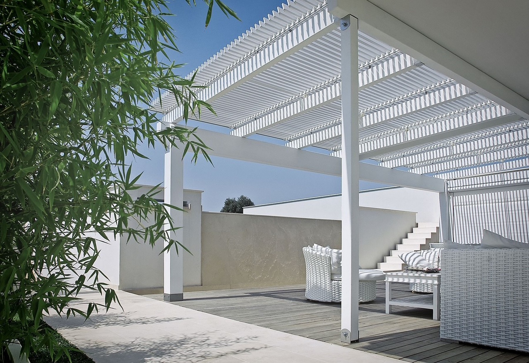 Le nostre pergole bioclimatiche a lamelle orientabili e retraibili si integrano perfettamente con qualsiasi edificio, creando spazi con nuove destinazioni d’uso, sicuri, confortevoli e senza necessità di manutenzione.